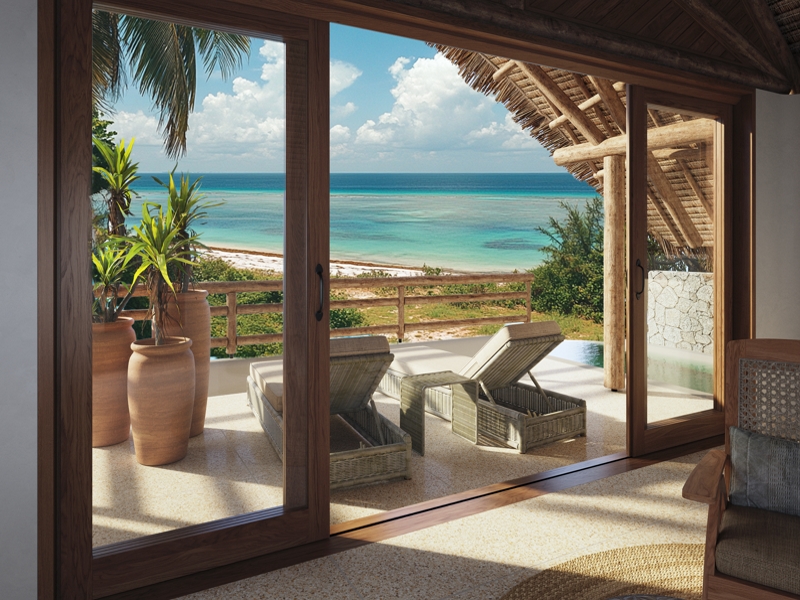 A tribute to local craftsmanship, blending raw materials with open, light-filled spaces. Each villa has a private pool and a seamless connection to the outdoors. - For its panoramic view of Mnemba Island