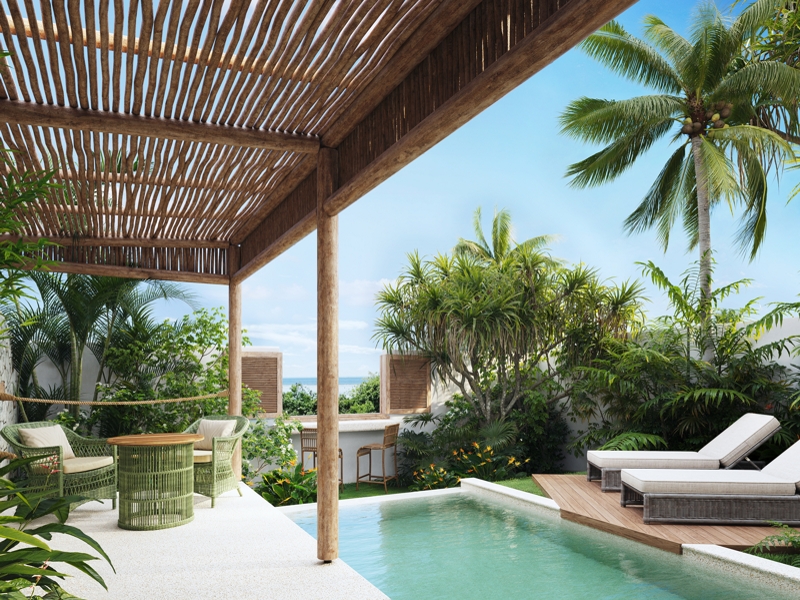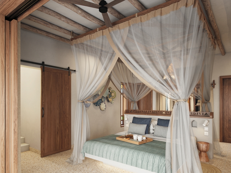 74 villas set within 80,000m² of greenery, by the beach, in a quiet, unspoilt part of the island. - For its design, rooted in nature and tradition